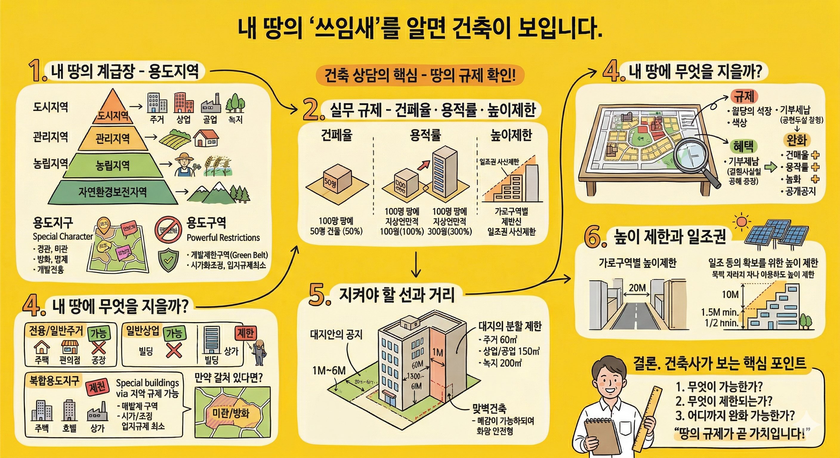 둘째, 가장 중요한 실무 규제 - 건폐율, 용적률, 건축물의 높이제한